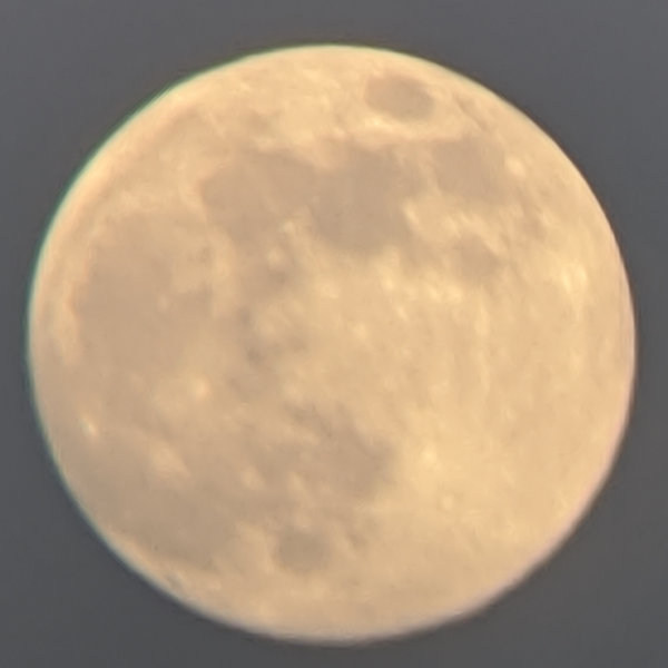 This month's full moon is called the "Flower moon". This year it is also a super moon. The image is an experiment using a telephoto lens strapped to the phone. You can't hold the phone in your hand for this sort of photo, there would be too much camera shake. The phone was placed on a tripod and the picture was taken using a remote control. It's nothing a telescope can't see, but it was fun.